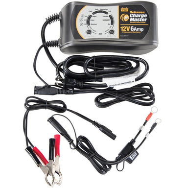 Model CM6A (0757-14CEC) Schauer Charge Master 12V, 6A Fully Automatic Multi-Stage Smart Battery Charger, with Battery Clips and Ring Terminals. Mic...
